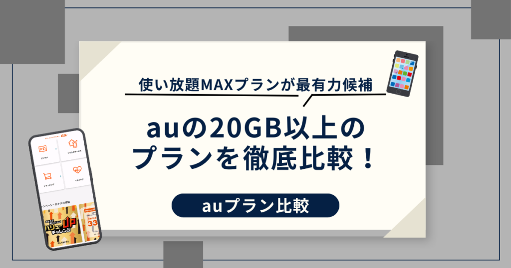 auの料金プランで20ギガ以上のプラン一覧!どれがいいか特徴を徹底比較